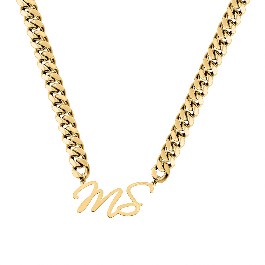 Initial Script Cuban Link Necklace
