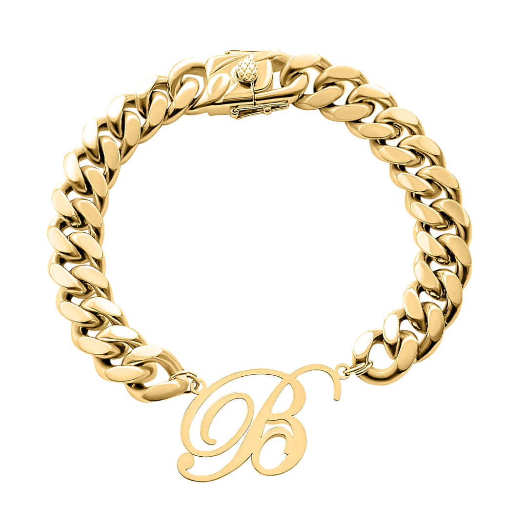 Initial Script Cuban Link Bracelet